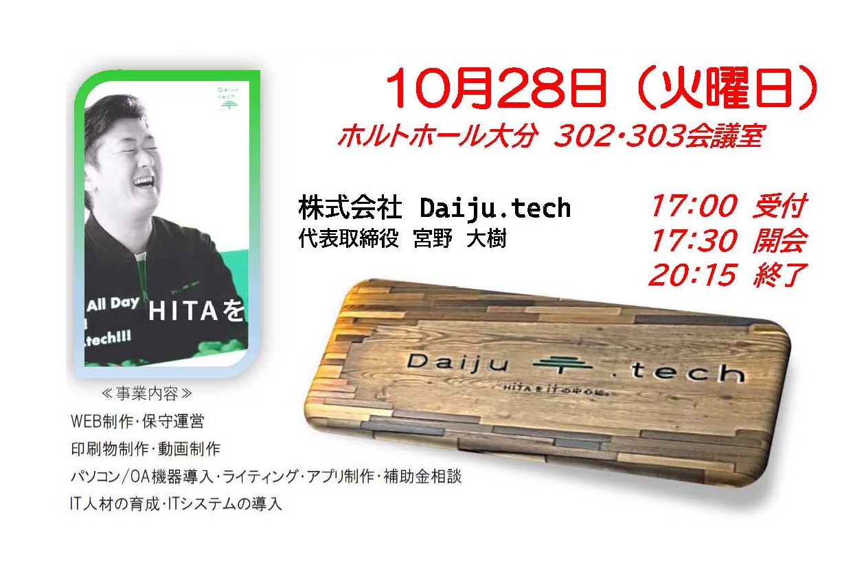 活動報告県南支部8月例会を開催しました 報告者:(株)D a i j u . t e c h 代表取締役 宮野 大樹氏