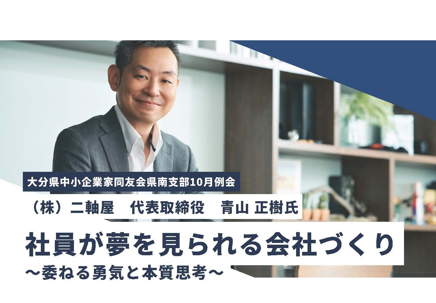 活動報告大分支部8月全体例会を開催しました 報告者:協栄工業(株) 代表取締役 大賀 豊文 氏