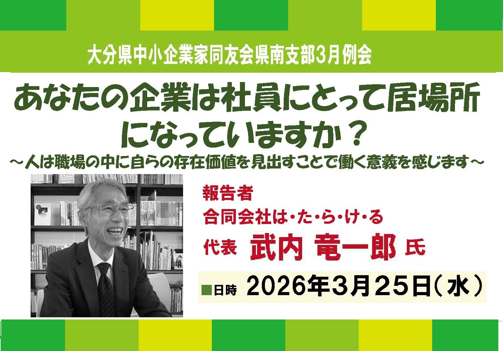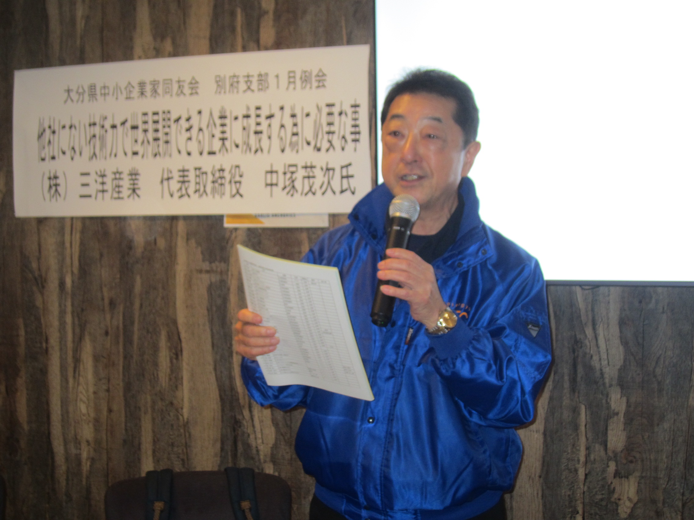 活動報告別府支部1月例会を開催しました 報告者:(株)三洋産業 代表取締役 中塚茂次氏 -