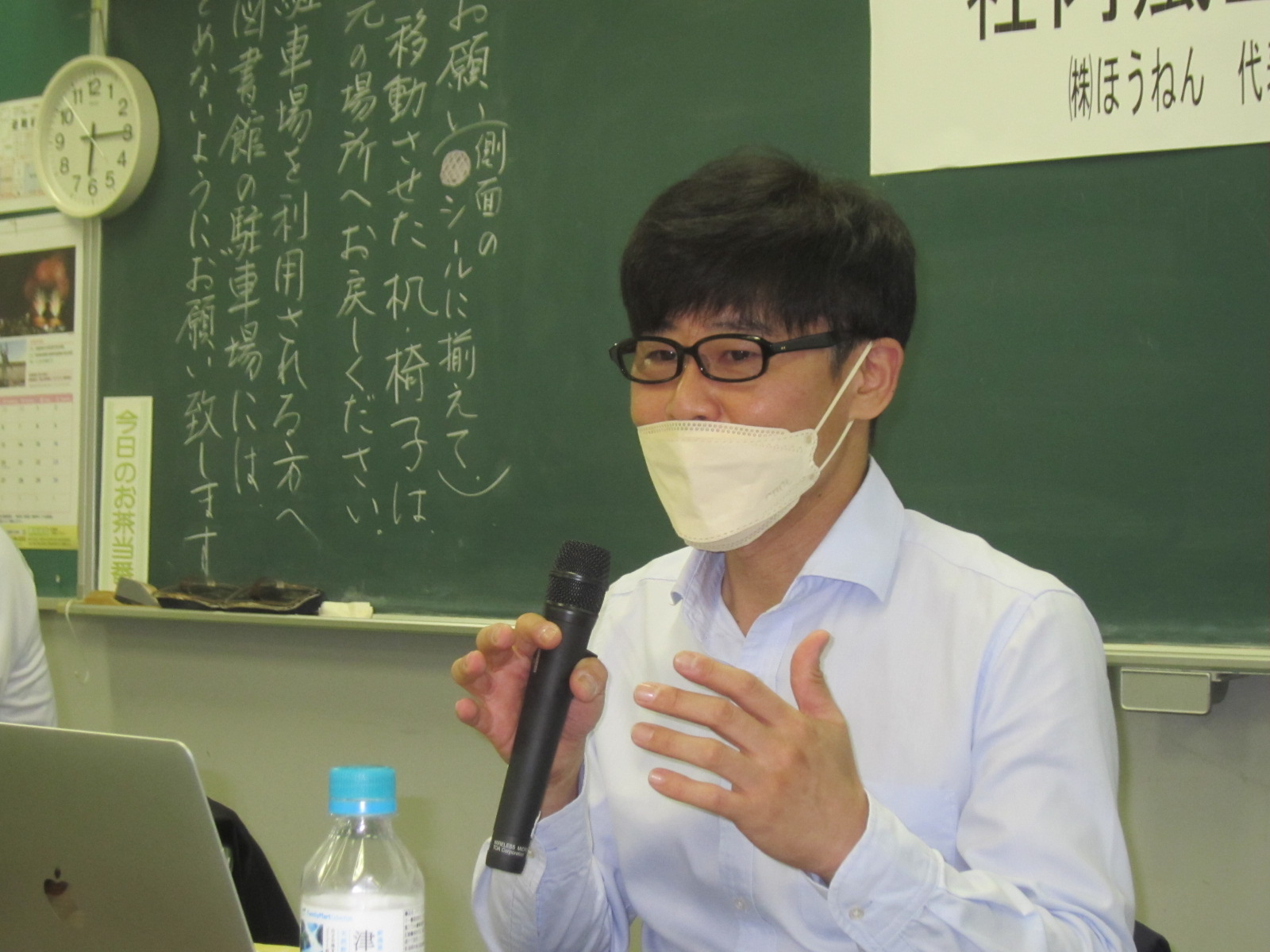 朝久野徹氏((株)ほうねん 代表取締役)が「社内風土改革の術」をテーマに報告しました。