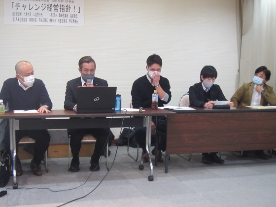 昨年の第27期経営指針成文化セミナー修了生4名から経営指針の実践に関することを報告していただきました。内容は、経営指針成文化セミナーに参加した経緯、参加した感想、出来た経営理念から、今後会社を社員と共にどのようにしていきたいかです。
