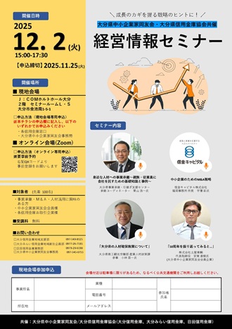 大分県中小企業家同友会と、業務提携を締結しています大分県信用金庫協会で「経営情報セミナー」を下記のとおり共催致します。