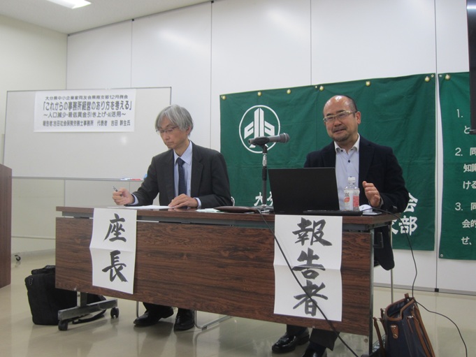 吉田幹生氏(吉田社会保険労務士事務所 代表者)が「これからの事務所経営のあり方を考える~人口減少・最低賃金引上げ・AI活用~」をテーマに報告しました。