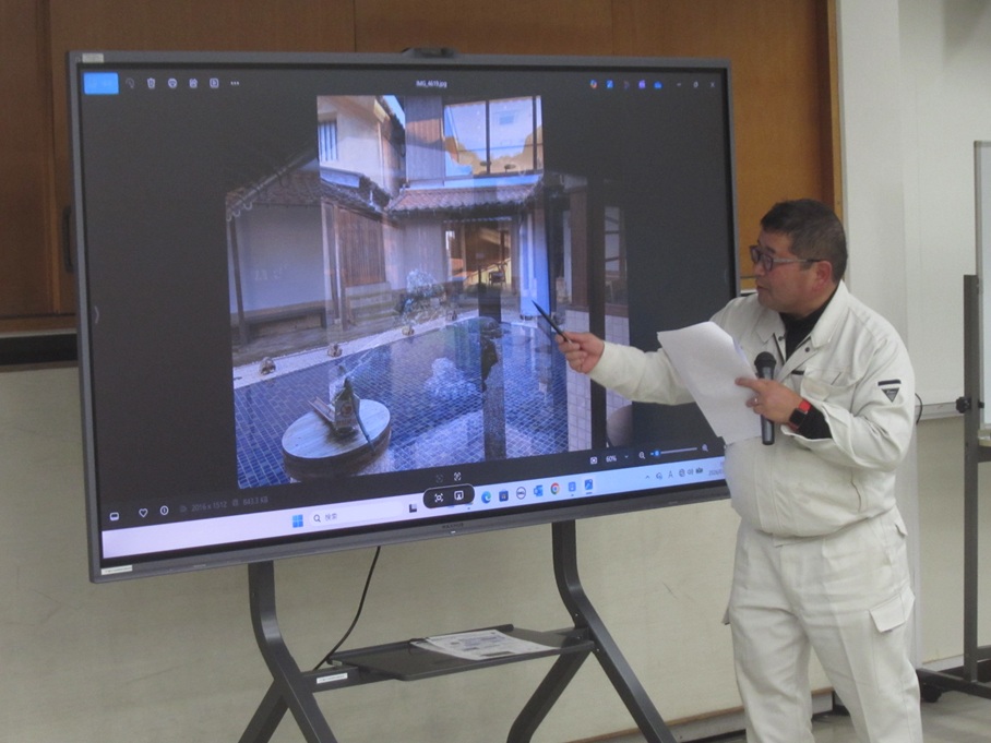 報告をお聞きして、地域の為に出来る事を考える中で、報告の様に仕事と絡めて古民家再生活動を自費で行う事は中々出来る事で有りませんが、郷土愛、仕事への一貫した取り組みや熱い思いは、廻りに徐々に浸透し巻き込んで形になっていくのではないかと感じました。時代の変化の中で問題が多い今般、焦りを抑え、目の前の事に集中し、一歩ずつ歩んで行くしかないのではないかと思いました。
