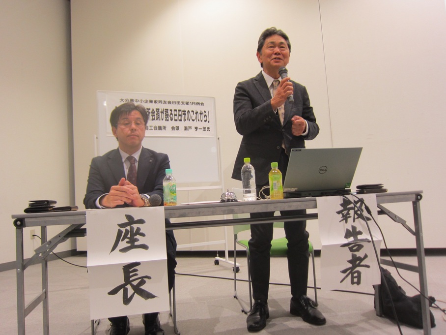 「日田商工会議所会頭が語る日田市のこれから」をテーマに、瀬戸亨一郎氏(日田商工会議所 会頭)に報告して頂きました。