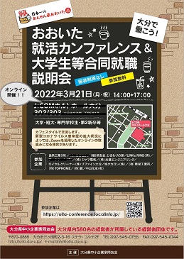 3月21日(月祝)14:00~17:00オンラインで「おおいた就活カンファレンス&大学生等合同就職説明会」を開催します!
