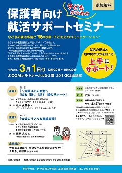 【共催事業】「保護者向け就活サポートセミナー」は新型コロナウィルス感染防止のため中止となりました